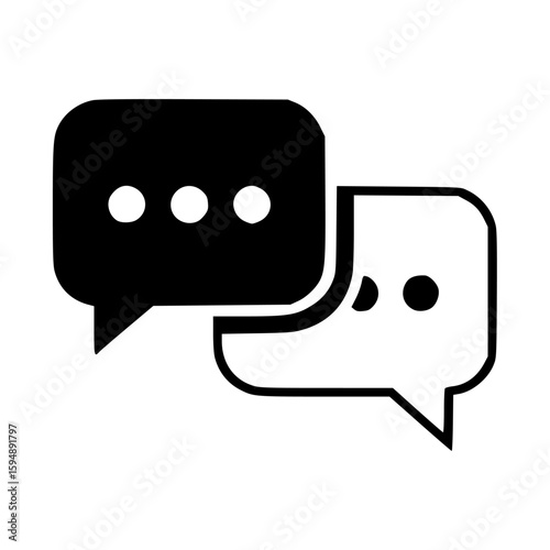 Naklejka premium Communication Bubbles: A graphic depiction of intertwined speech bubbles, one dark, one light, symbolizing dialogue and conversation.