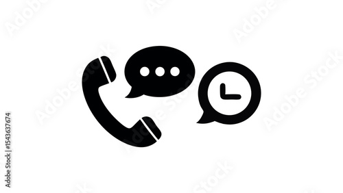 Obraz premium Communication Icons Set Featuring Phone, Chat Bubble, and Clock Symbol in...