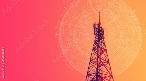 © Rossarin, Obraz premium Communication tower on a vibrant gradient background.