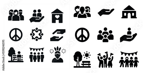 © Влада Яковенко, Naklejka premium Community and volunteer solid icons set – filled, outreach and support symbols