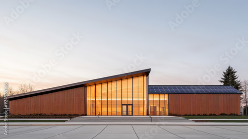 © medalinebow, Obraz premium Community center showcasing energy-efficient technologies