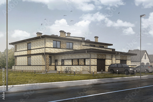 © Денис Петров, Obraz premium community house 3d visualization residential house