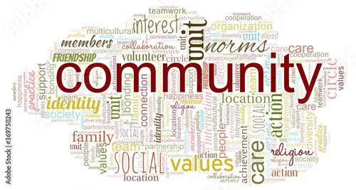 © Colored Lights, Obraz premium Community word cloud isolated on a white background