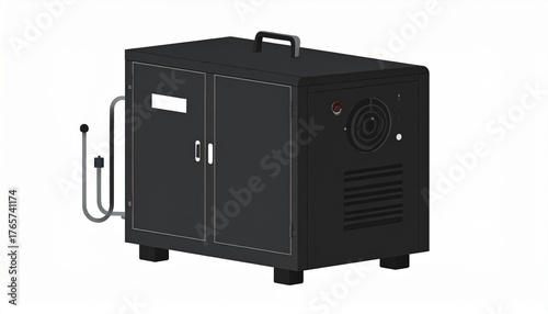 © Ardi, Obraz premium Compact black industrial utility machine with front doors, vents, and a top handle, suitable for diverse power or processing tasks