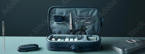 Naklejka premium Compact First Aid Kit with Essential Medical Supplies for Emergency Preparedness