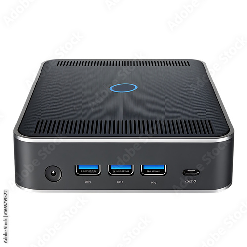 © Habib, Obraz premium Compact intel nuc mini pc with usb 3.0 and power button transparent background