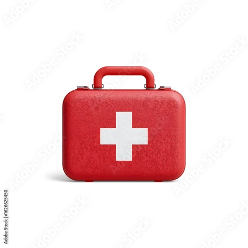 Obraz premium Compact red first aid kit with white cross symbol