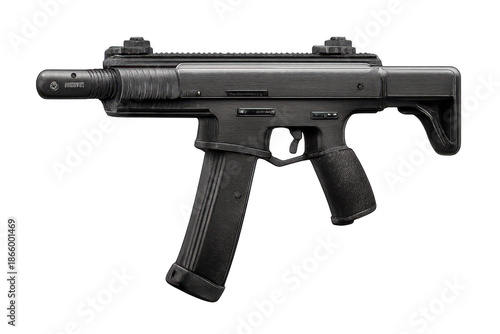 © whitestorm, Fototapeta premium Compact Submachine Gun Isolated on a transparent background, Black Color