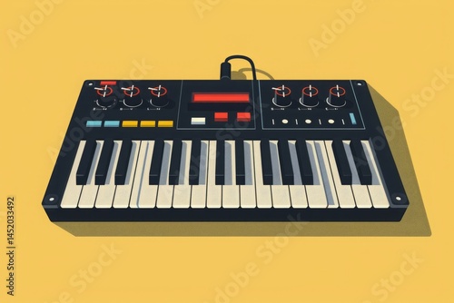 © Tang, Fototapeta premium Compact Synthesizer Illustration with Vibrant Background Design