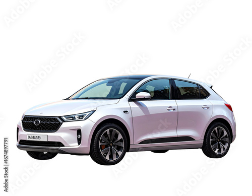 © MstSultanaAkter, Fototapeta premium Compact Urban EV Car, Front Angle View, Isolated PNG on White Background