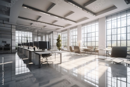 Fototapeta premium company interior room bright workplace window modern chair office desk furniture. Generative AI.