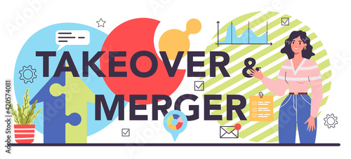 Obraz premium Company takeover and merger typographic header. Business progress,