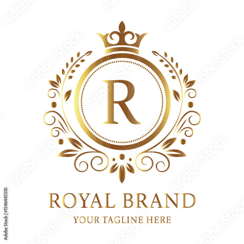 © MDMohsin, Fototapeta premium Company vector logo design R with gold star symbol for business celebration