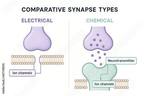 Obraz premium Comparative Synapse Types: Electrical vs. Chemical Illustration