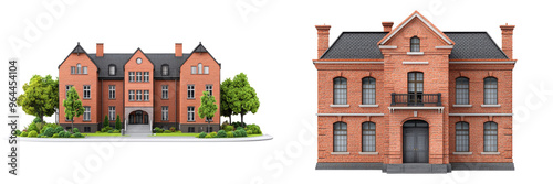 © Sariyono, Obraz premium Comparison of two architectural styles of red brick buildings