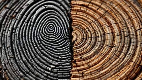 Fototapeta premium Comparison of Two Distinct Tree Rings with Contrasting Colors