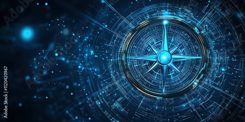 Obraz premium Compass design with futuristic digital elements creating a sense of navigation and exploration in a blue color scheme