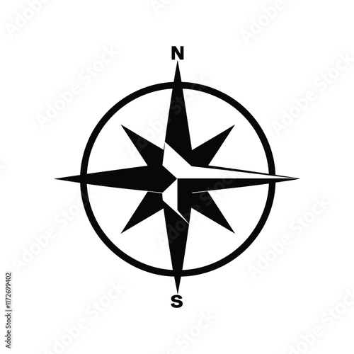 © motiur vector artist, Naklejka premium compass in a circle, outline, silhouette, vector, illustration, isolated on white background