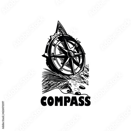 Fototapeta premium compass logo design. compass hand drawn logo vector