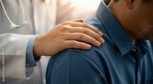 Fototapeta premium Compassionate Doctor Offers Support and Care to Patient in Medical Setting