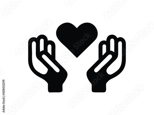 Obraz premium Compassionate Hands Gently Holding a Heart: Simple Black and White Icon,...