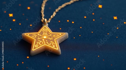 Fototapeta premium Compatibility shown as zodiac signs etched into a star-shaped amulet, glowing...