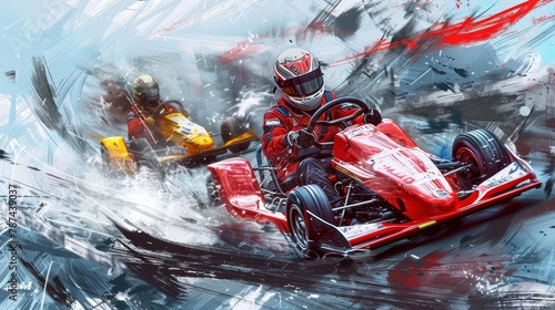 Fototapeta premium competitive gokart racing motorsports action scene digital illustration