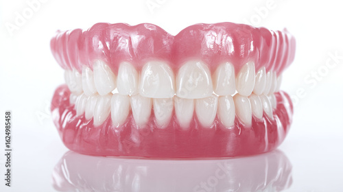 Fototapeta premium Complete denture set with gums and teeth in full view, isolated on...