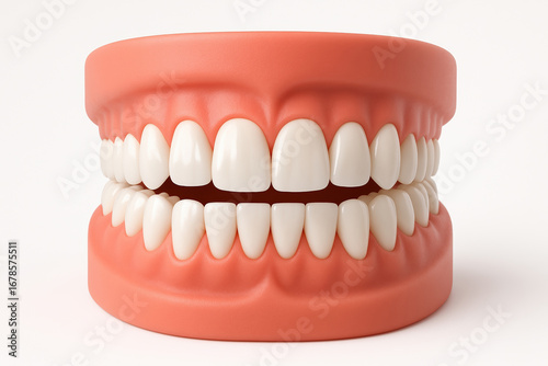 Fototapeta premium Complete Set of Dentures Upper and Lower False Teeth Prosthetic Dental Appliance for Tooth Replacement and Smile Restoration