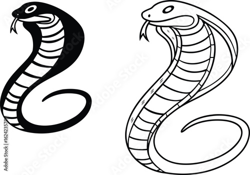 © Robiul, Fototapeta premium Complete Snake Body Vector in Line Art Style Isolated on White Background
