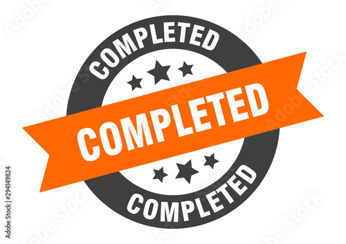 Fototapeta premium completed sign. completed orange-black round ribbon sticker