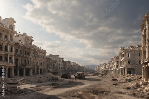 Fototapeta premium completely destroyed city during the war. ai generative