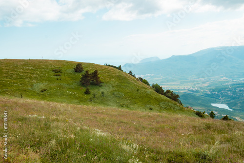 Obraz premium Completely overgrown with bushes and trees, a green mountain