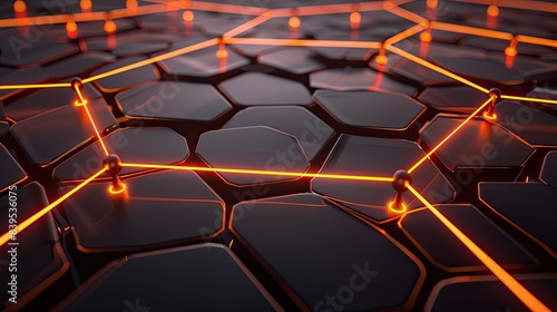 © AI Farm, Obraz premium Complex digital network connections with floating, glowing data nodes and lines