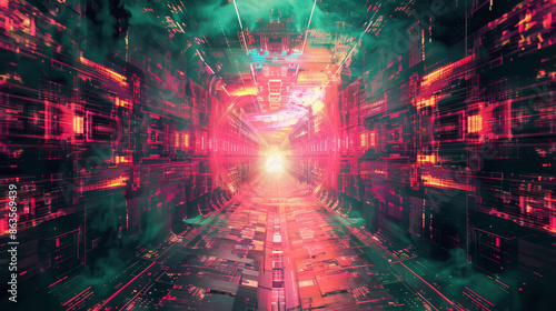 Obraz premium Complex Digital Patterns in Neon Colors