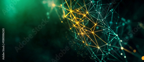 © NeoArtist, Obraz premium Complex Geometric Forest with Neon Green Outlined Shapes