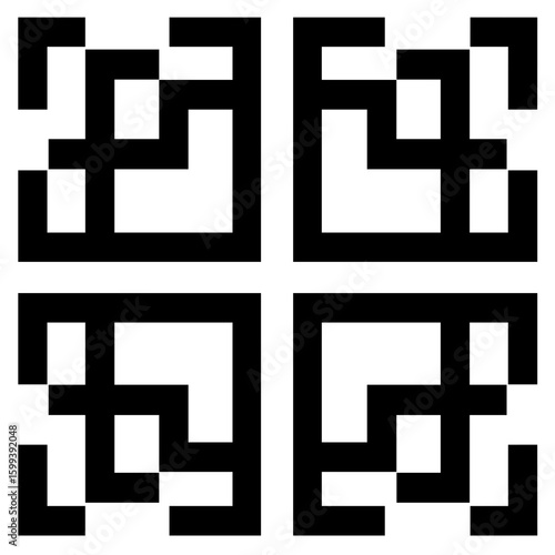 Obraz premium Complex geometric patterns in bold black shapes arranged in a square layout...