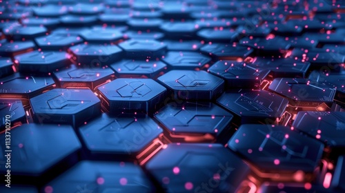 Obraz premium Complex hexagonal network processing big data with glowing lines and nodes,...