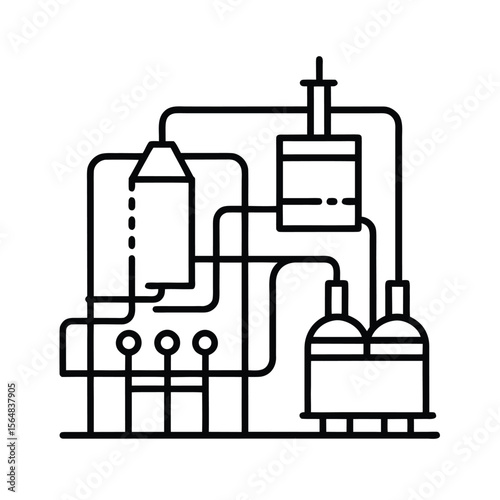 © Photo Station 19, Fototapeta premium Complex industrial system outline drawing silhouette vector illustration
