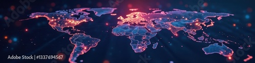 © Pornchai, Fototapeta premium Complex interconnected lines and points depicting worldwide connectivity , lines, global
