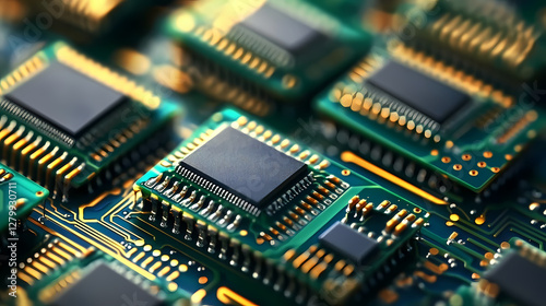 Fototapeta premium "Complex System of Green and Gold Electronic Components"