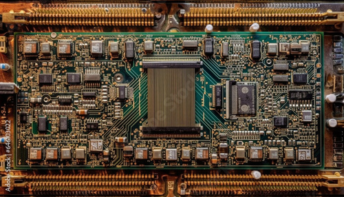 Obraz premium Complexity of semiconductor circuit board, a small futuristic marvel generated by AI