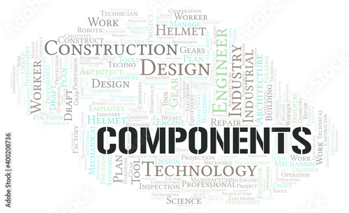 © sharafmaksumov, Obraz premium Components typography word cloud create with the text only