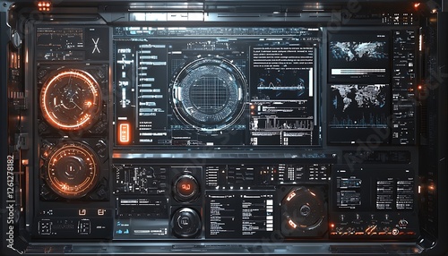 © Ansar, Fototapeta premium Composite image abstract technology interface, illustrating complex system design
