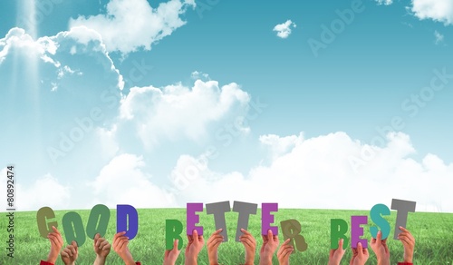 © WavebreakMediaMicro, Naklejka premium Composite image of hands holding up good better best