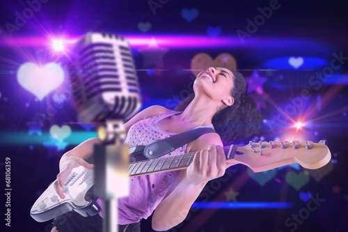 © WavebreakmediaMicro, Fototapeta premium Composite image of pretty girl playing guitar
