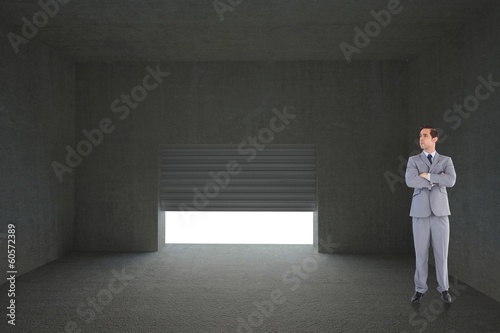 © WavebreakmediaMicro, Obraz premium Composite image of serious businessman with arms crossed