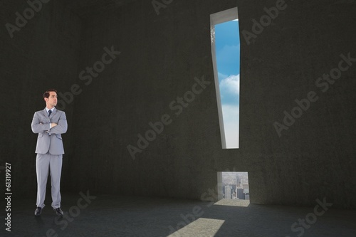 © WavebreakmediaMicro, Obraz premium Composite image of serious businessman with arms crossed