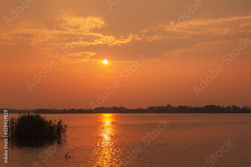 © zhuxiaophotography, Naklejka premium Composition of beautiful sky background, forest and sunset.