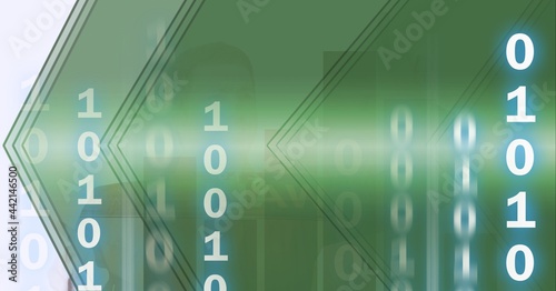 © vectorfusionart, Naklejka premium Composition of binary coding on green background